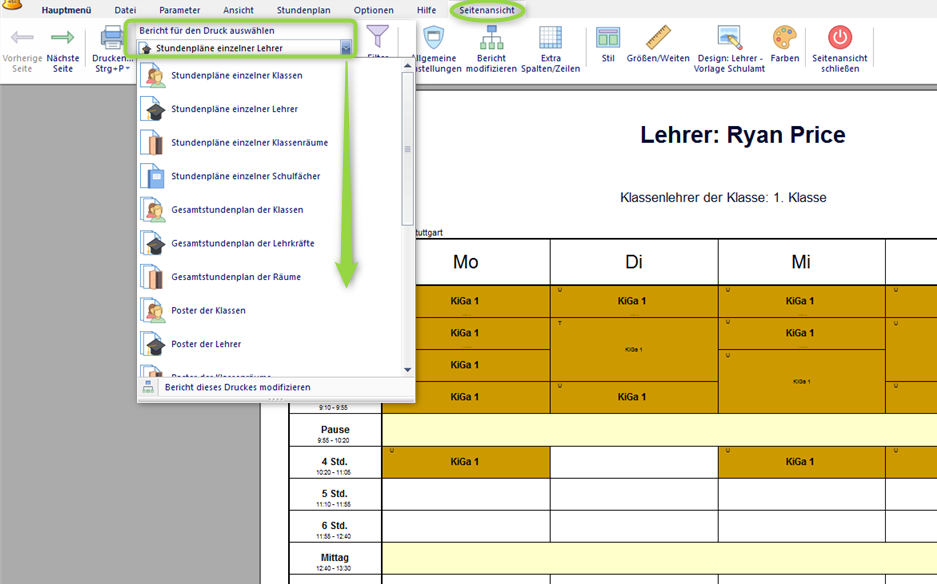 Die Druckausgabe Ihres Stundenplans kann unter Drucken - Seitenansicht an Ihre individuellen Vorstellungen angepasst werden.