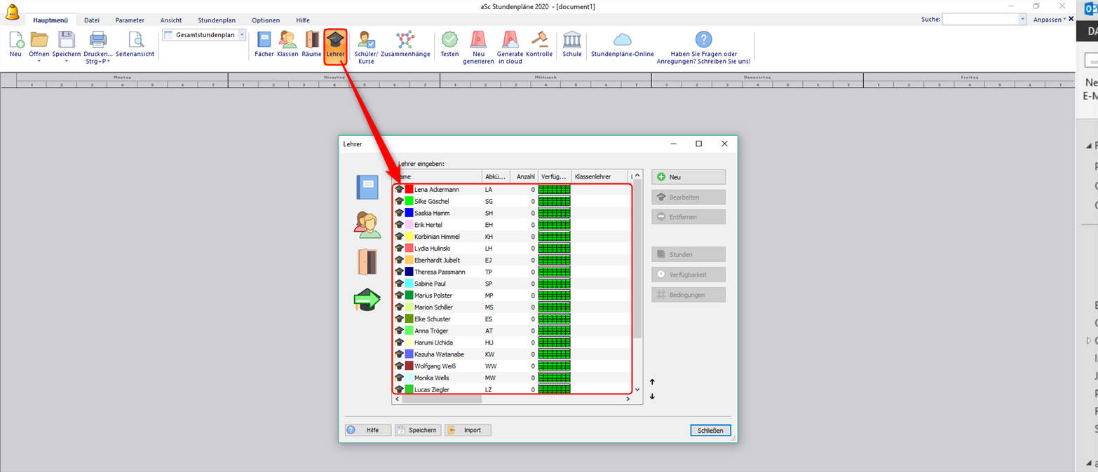 5. Wenn Sie im Hauptmenü jetzt auf das Feld Lehrer klicken, sind nun Ihre importierten Daten eingefügt.