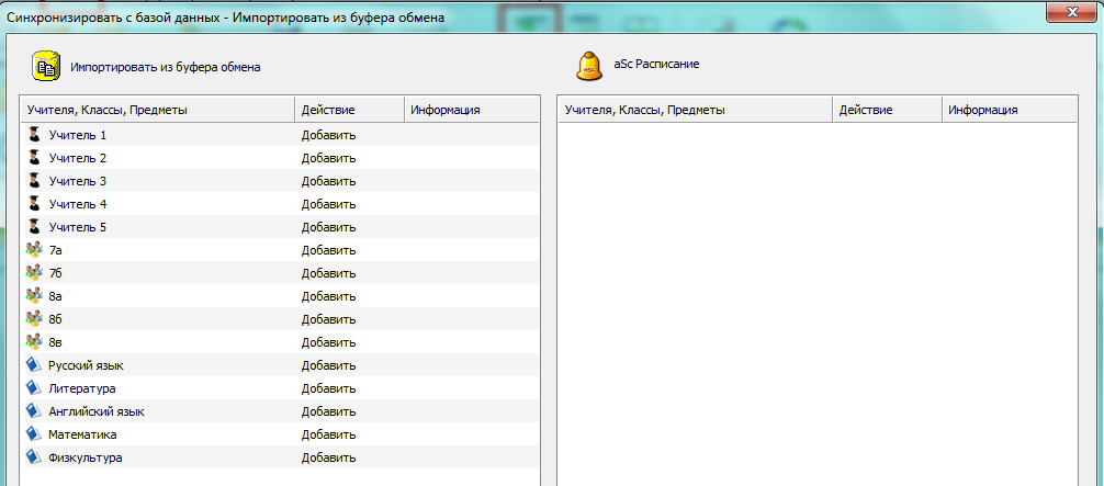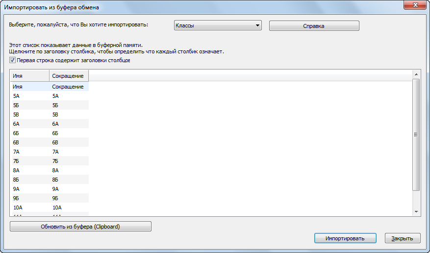 Импорт данных из буфера временной памяти компьютера (Clipboard) - полезный инструмент, который Вы можете использовать, чтобы импортировать данные в программу aSc Расписания из программ Windows, напр, Excel, Word, OpenOffice, в которых данные находятся в виде таблиц.