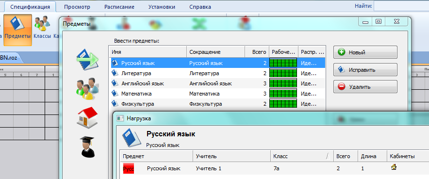 8. Повторите то же самое для учителей, кабинетов и предметов.