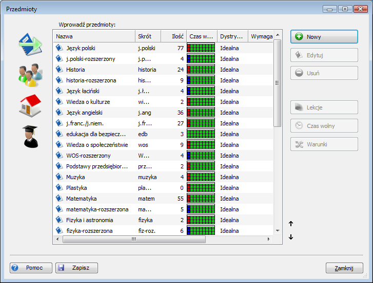 Sale szkolne dla przedmiotu