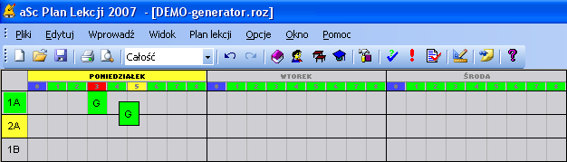 Jak już wspomniano, plan można zmienić, przemieszczając kartki. Oczywiście, program przeprowadza automatyczną kontrolę i uniemożliwia umieszczenie karteczki w niewłaściwej pozycji - na przykład w czasie, w którym nauczyciel nie może prowadzić lekcji. Program sprawdza również sytuacje, w których kolidują oddziały i sale szkolne.