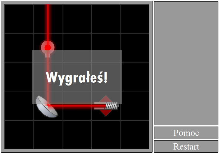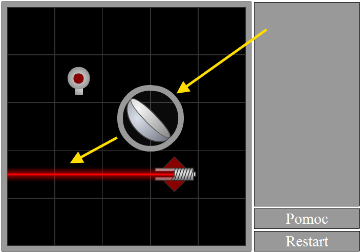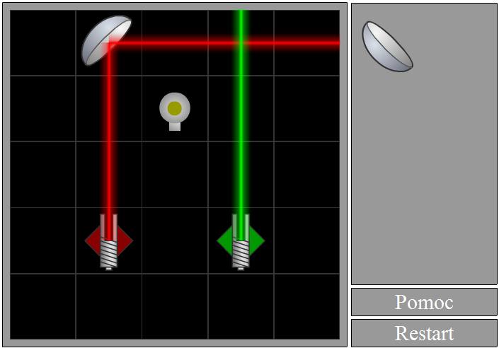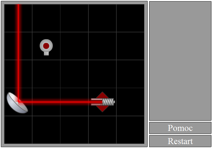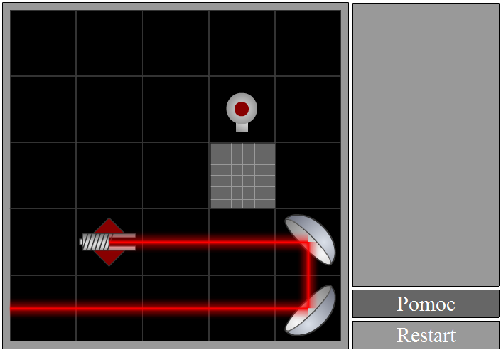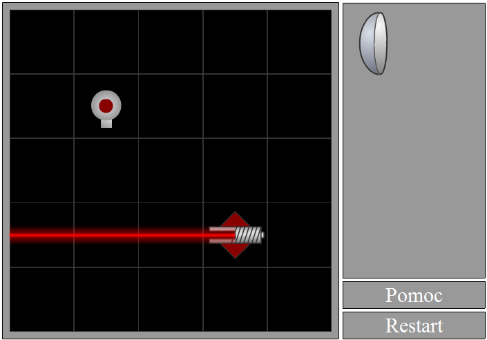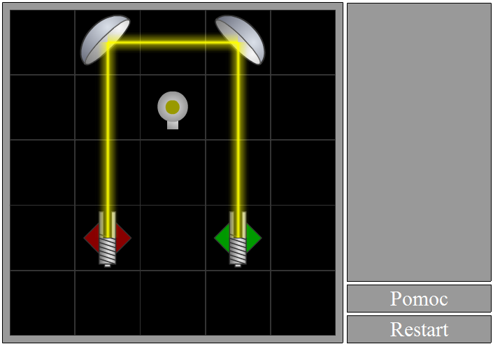 Puść przycisk myszy i obiekt zostanie umieszczony na planszy. Możesz zauważyć, że światło zostało odbite, jednak wciąż nie trafia w żarówkę.