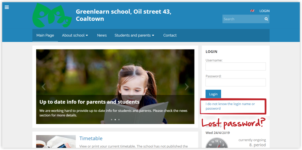 If your e-mail address is listed in the EduPage system, a temporary link for changing password will be sent to your e-mail address.