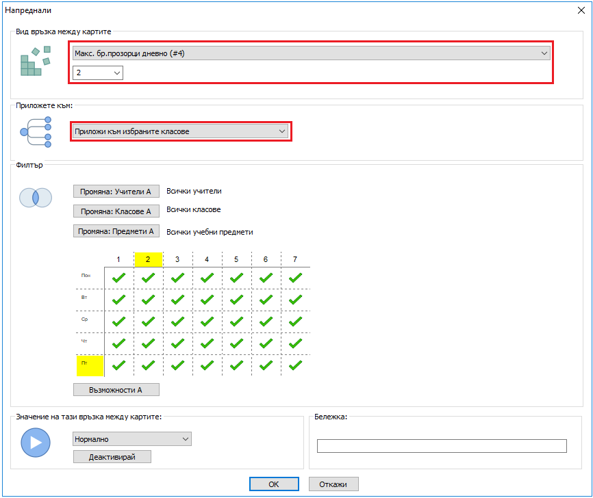 Но, ако са нужни прозорци/интервали, можете да настроите "неподдържаща /неработеща " опция за блока с часове за обучение. Или можете да кажете, че някои предмети могат да са следобяд.