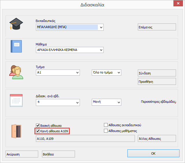 Αργότερα όταν εισάγετε διδασκαλίες μπορείτε να προσδιορίσετε ότι αυτή διδασκαλία μπορεί να υλοποιηθεί σε κοινή αίθουσα.