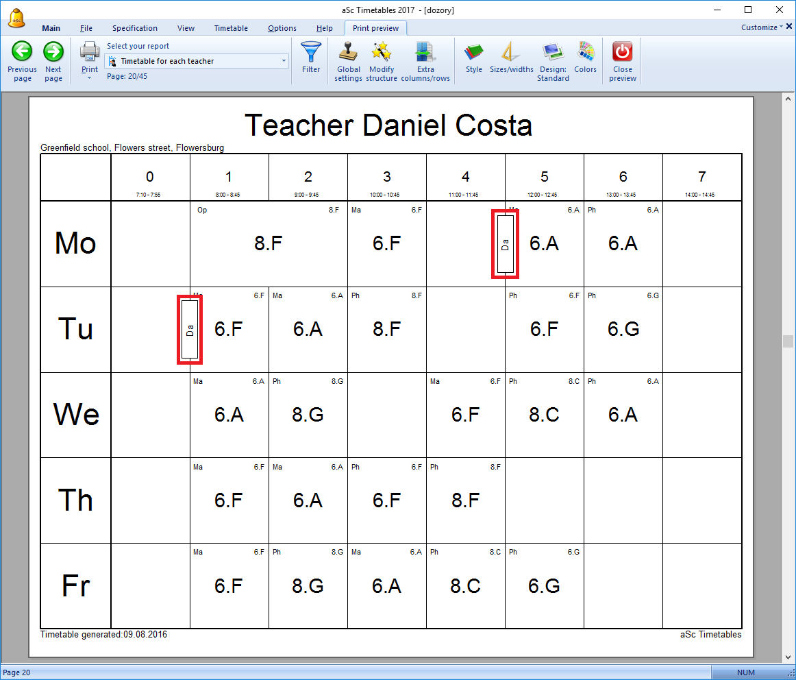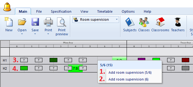 Препоръчително е също така да въведете съседните класни стаи 2 в тази част на училището. Тази информация помага при определяне на дежурните учители – по-добре е да изберете учител, които е преподавал в някоя от близките класни стаи преди или след времето за дежурство.