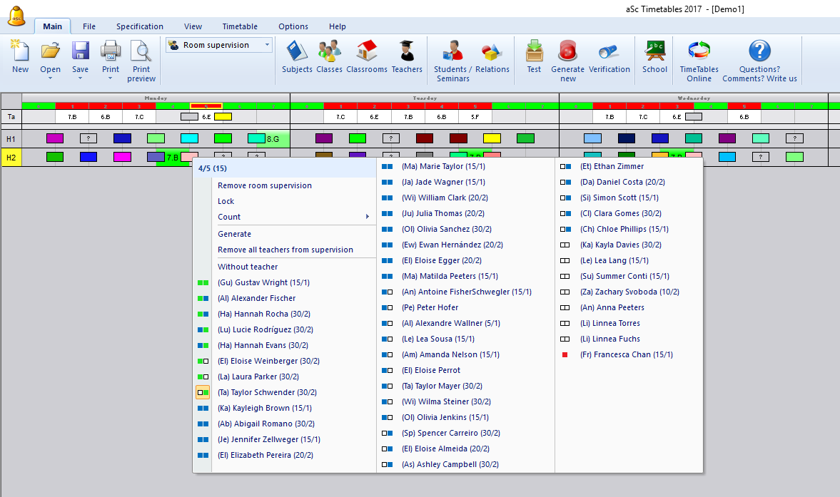 В някои училища децата трябва да бъдат наблюдавани от учител по време на междучасията в някои части на училището (например зали или училищния двор). Разписание aSc предлага набор от функции, за да се справите с тази ситуация