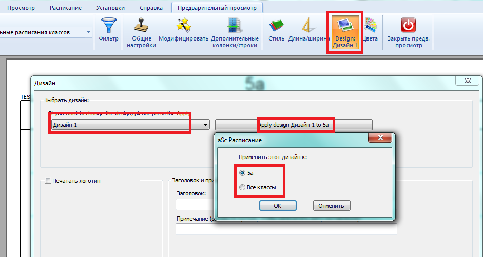Тогда нажмите кнопку Дизайн. Выберите дизайн, нажмите кнопку Применить. Программа спросит, хотите ли Вы применить этот дизайн к выбранному классу или ко всем классам.