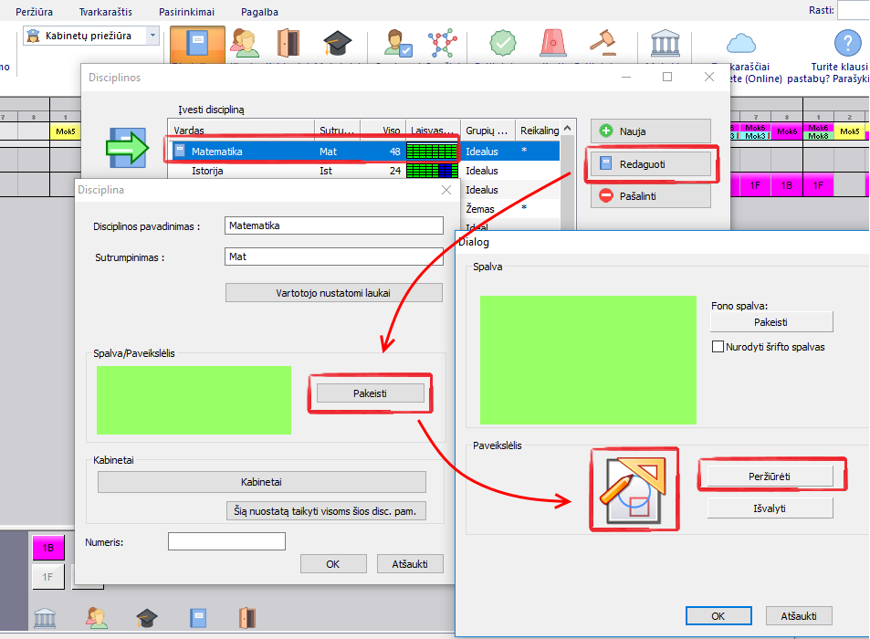 - Programa aSc Tvarkaraščiai turi paveikslėlių rinkinį, kuris yra direktorijoje (aplanke)'Subject pictures', bet galite sukurti ir savo paveikslėlių ar surasti tinkamesnių ir Internete.