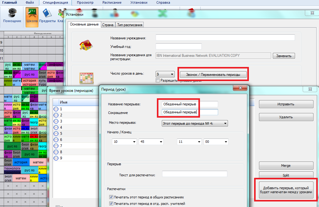 Если у Вас есть большие перерывы, которых надо указать в расписании, Вы можете добавить их, используя кнопку "Добавить перерыв: