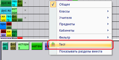 1. Щелкните правой кнопкой мыши в нижней части - на панели неразмещенных уроков, выберите пункт "Фильтр" и нужные условия.