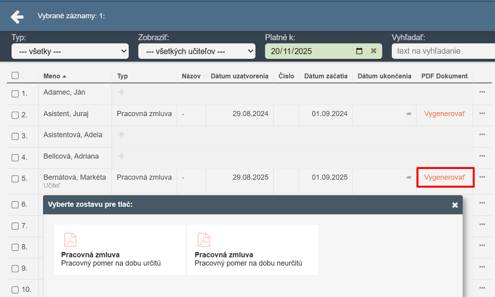 Generovanie pracovných zmlúv a dohôd