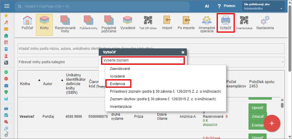 Ako vytlačiť zoznam Evidencie knižničného fondu.