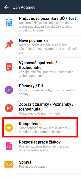 Hodnotenie zadáte kliknutím na ikonu žiaka. Opakovaným klikaním sa menia možnosti hodnotenia podľa toho, aký spôsob hodnotenia máte nastavený.