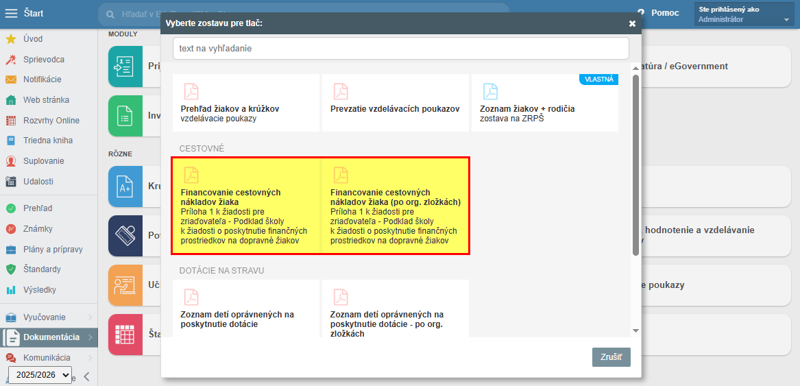 Prílohy nájdete v tlačových zostavách -> Zoznamy: