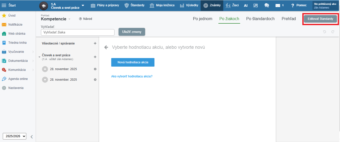 Zadané štandardy k predmetu sú viditeľné pre všetkých učiteľov daného predmetu na vašej škole.