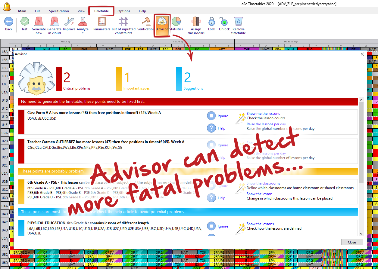 6. Advisor can now detect several more fatal problems in your timetables. So that you do not generate the timetable with issues that will certainly prevent the successful generation.
