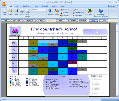 The software now features simplified XML import/export. This allows you or the company that supplied you with school management system to easily transfer data to aSc TimeTables. Or to transfer the created timetable back to the school management system. See: