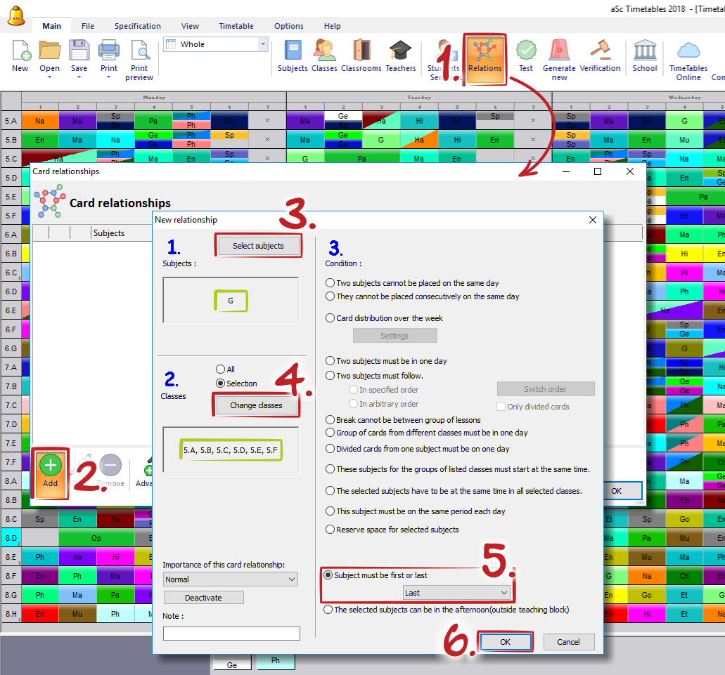 I need subject Geography to be last lesson on a day in classes 5.A, 5.B, 5.C...
