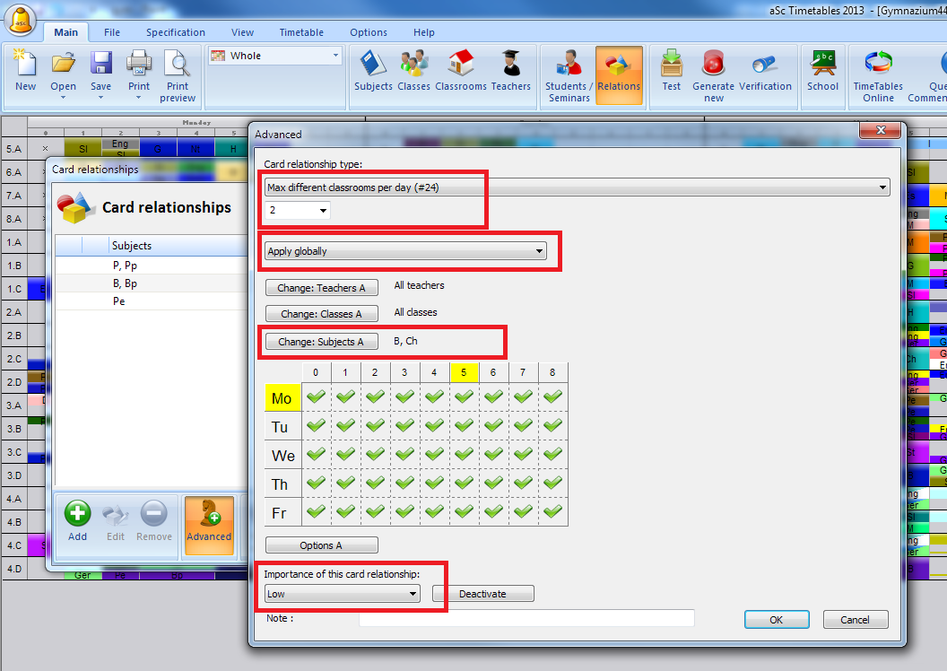 Of course the above is more or less equivalent to removing one Lab from the school. But if you generate with relaxation allowed the above has two advantages: