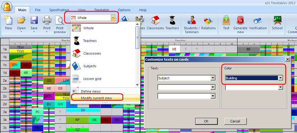 You can also change the texts that shall be displayed on the screen. In some cases you want to see teacher instead of clasroom etc.
