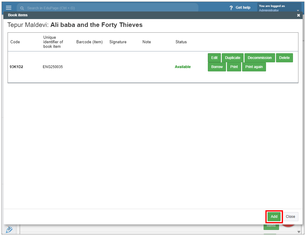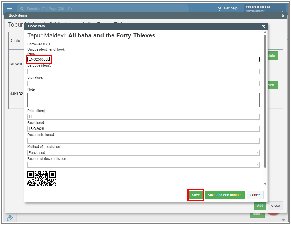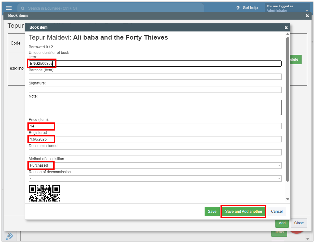 How to print QR codes for added books?