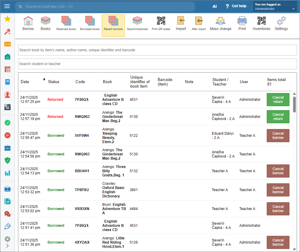 In the “Recent borrows” tab, you can view completed loans. You can correct any incorrectly recorded loans here.