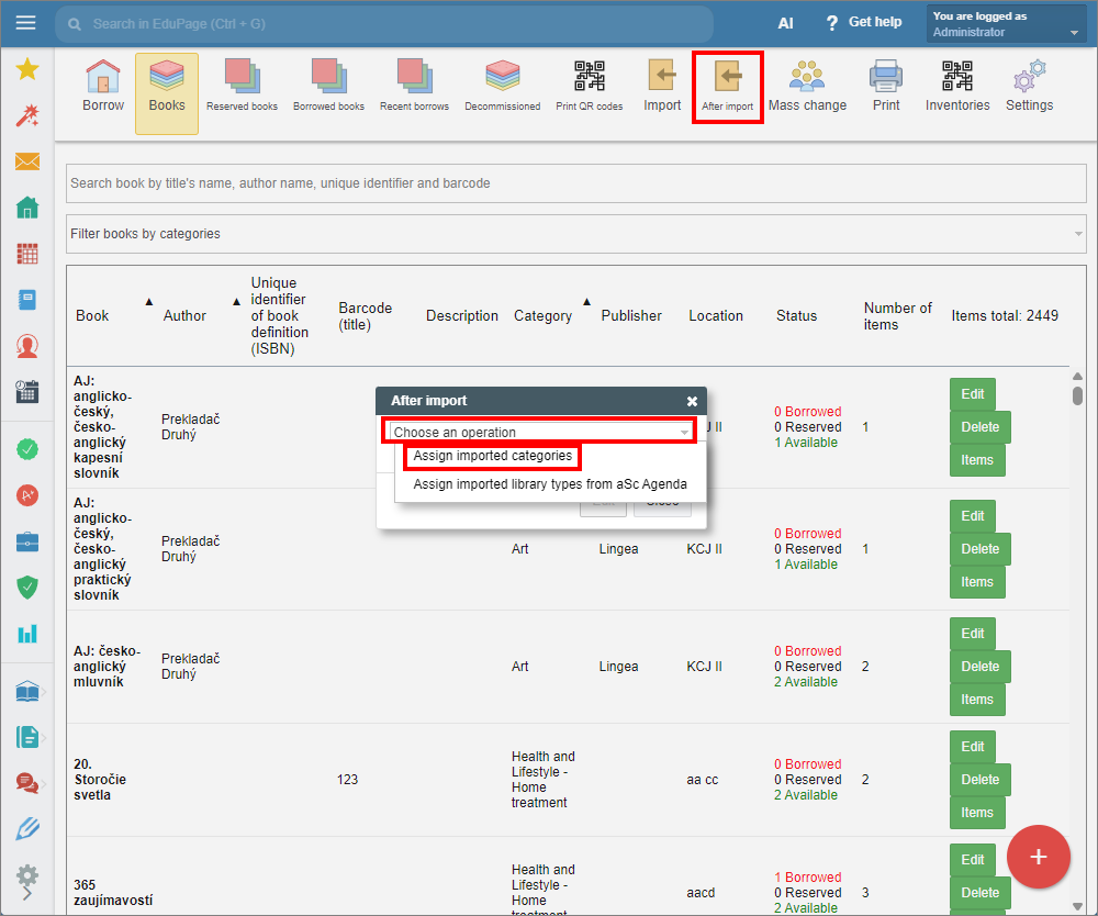 Only predefined categories can be assigned to the imported titles. In the “After import” tab, you can assign these predefined categories to groups of titles that were formed based on categories not recognized by the module.