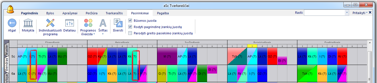 Kodėl mano tvarkaraštyje atsirado klaustukai?