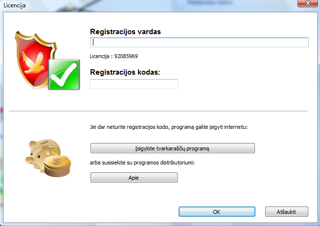 Registracijos kodą reikia įvesti į programą. Tai padaryti reikia taip: paleidus programą, paspauskite mygtuką Įsigykite ir užregistruokite, Įveskite registracijos kodą.