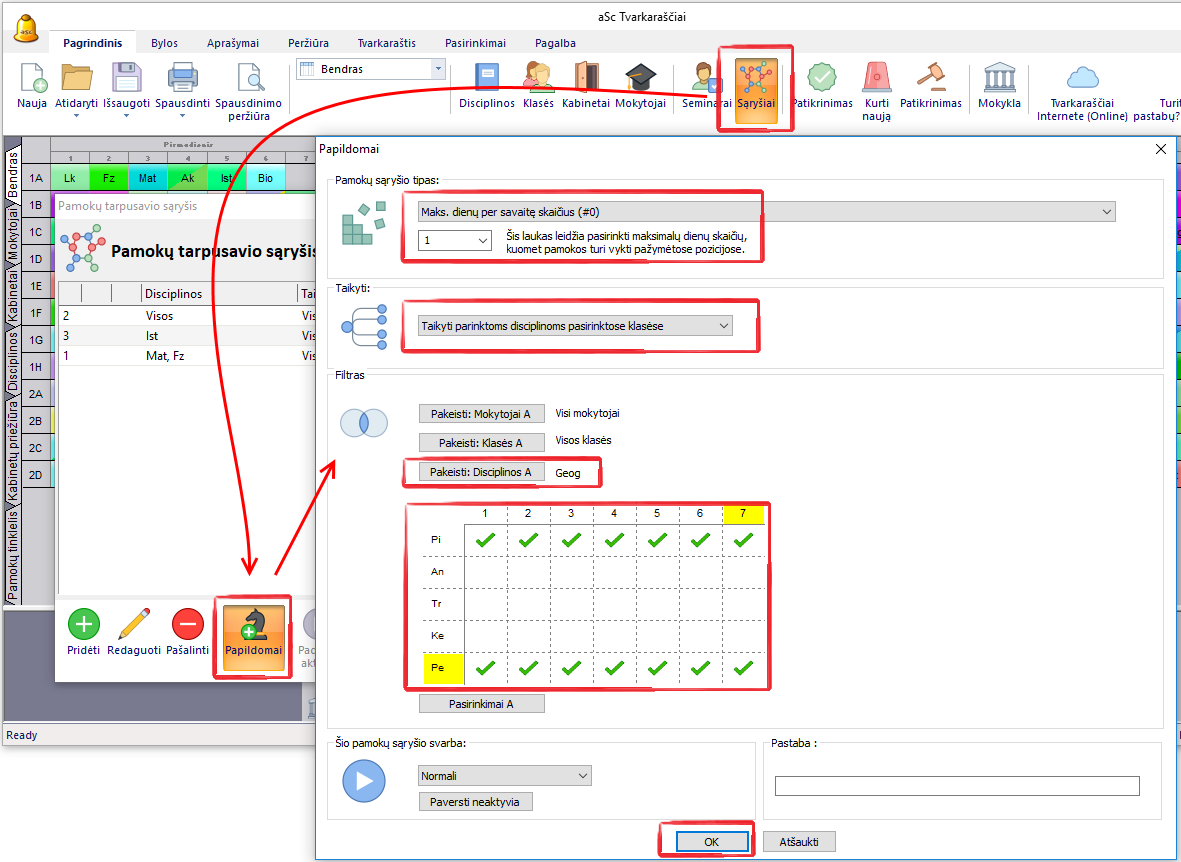 Tokiu atveju reikėtų įvesti papildomą pamokų sąryšį: