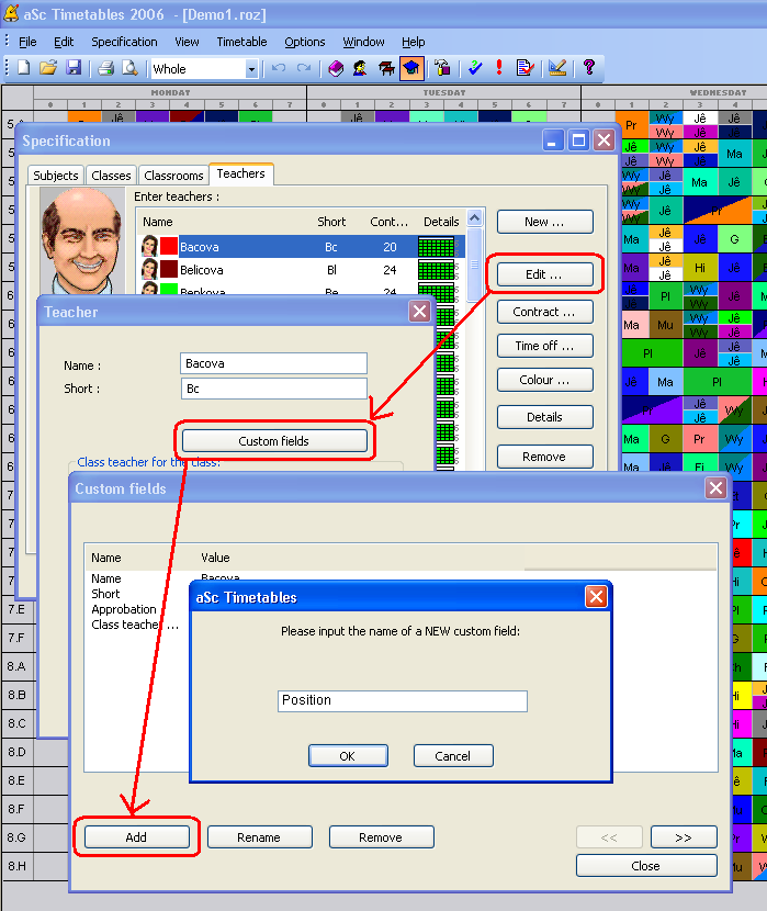 تستطيع التحكم بإدخال بيانات إضافية لكل من المدرسين, الفصول, القاعات الدراسية أو لك الجدول المدرسي .