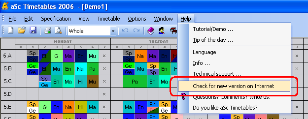 Kad želite provjeriti koristite li zadnju verziju softwarea koristite izbornik Pomoć/Provjeri za novu verziju na internetu: