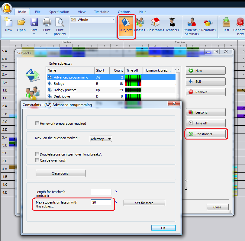 כמו כן ניתן להזין זאת בכל השיעורים של נושא כלשהו בכפתור "הגבלות":