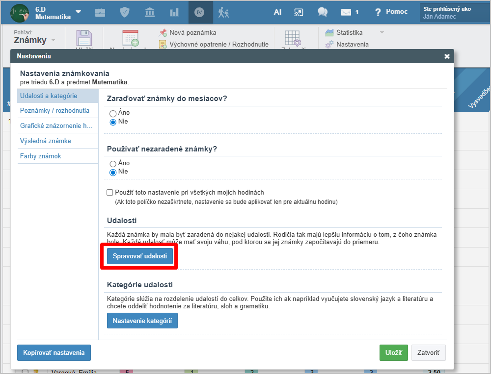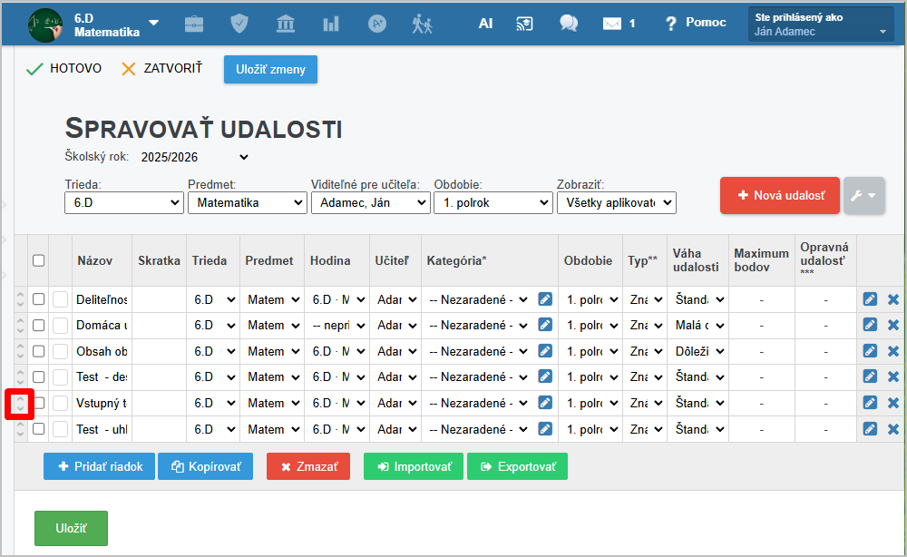 Poradie udalostí v IŽK môžete zmeniť cez nastavenia.
