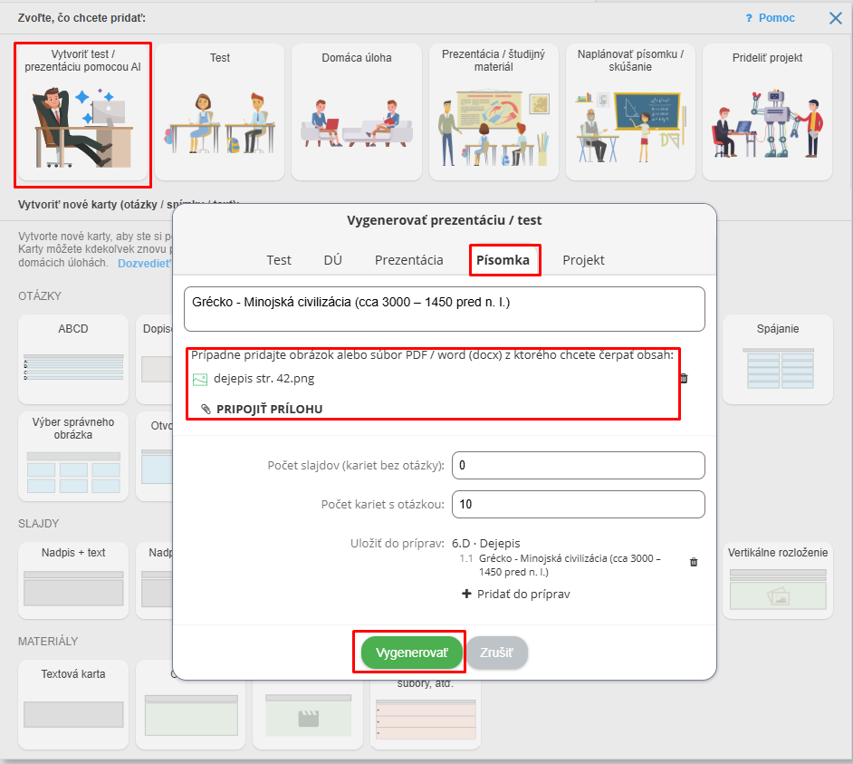 Ako vytvoriť písomku pomocou EduPage AI priamo z materiálov, z ktorých ste učili?