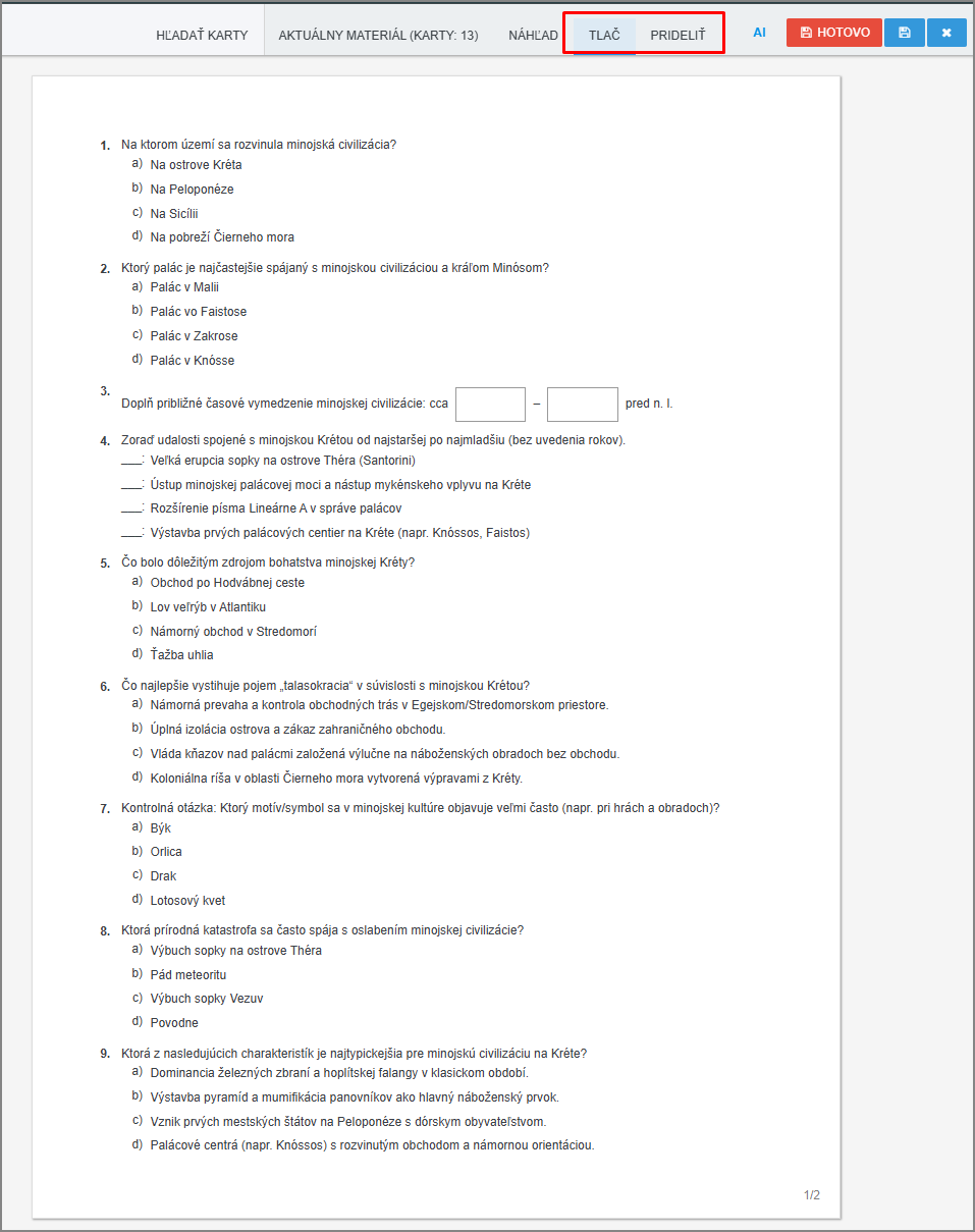 EduPage AI analyzuje obsah a vytvorí otázky priamo z neho. V praxi tak žiakov skúšate presne z tých informácií, ktoré mali k dispozícii počas vyučovania.