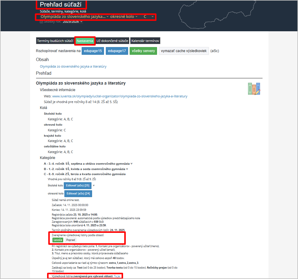 Organizátor - ako môžem zverejniť výsledkové listiny okresného/ krajského kola v konkrétnej oblasti