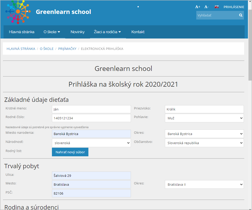 3. Rodičia, ktorí chcú zapísať svoje dieťa do prvého ročníka, nájdu na webstránke pokyn, že majú prihlášku za svoje dieťa vyplniť elektronicky. Všetky údaje do prihlášky môžu rodičia zadať a skontrolovať si v pohodlí domova. Ak je to potrebné, je možné k prihláške pripojiť aj súbor (napr. potvrdenie od lekára, špeciálneho pedagóga a pod.).