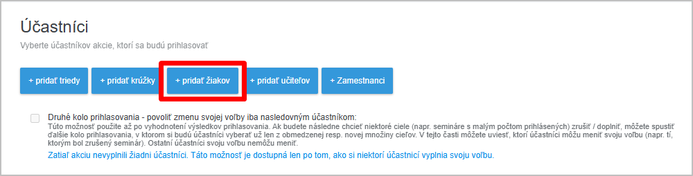 V sekcii účastníci zvoľte "+pridať žiakov".