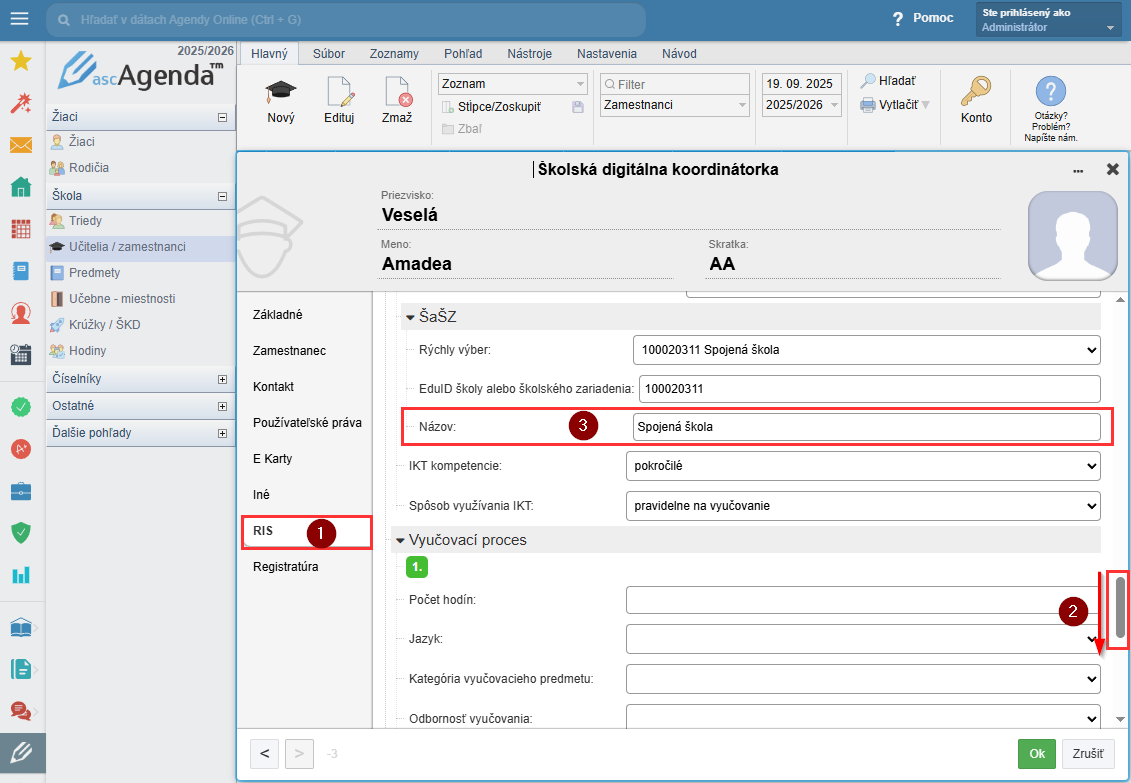 Názov zamestnávateľa sa zadáva v karte zamestnanca v záložke RIS: