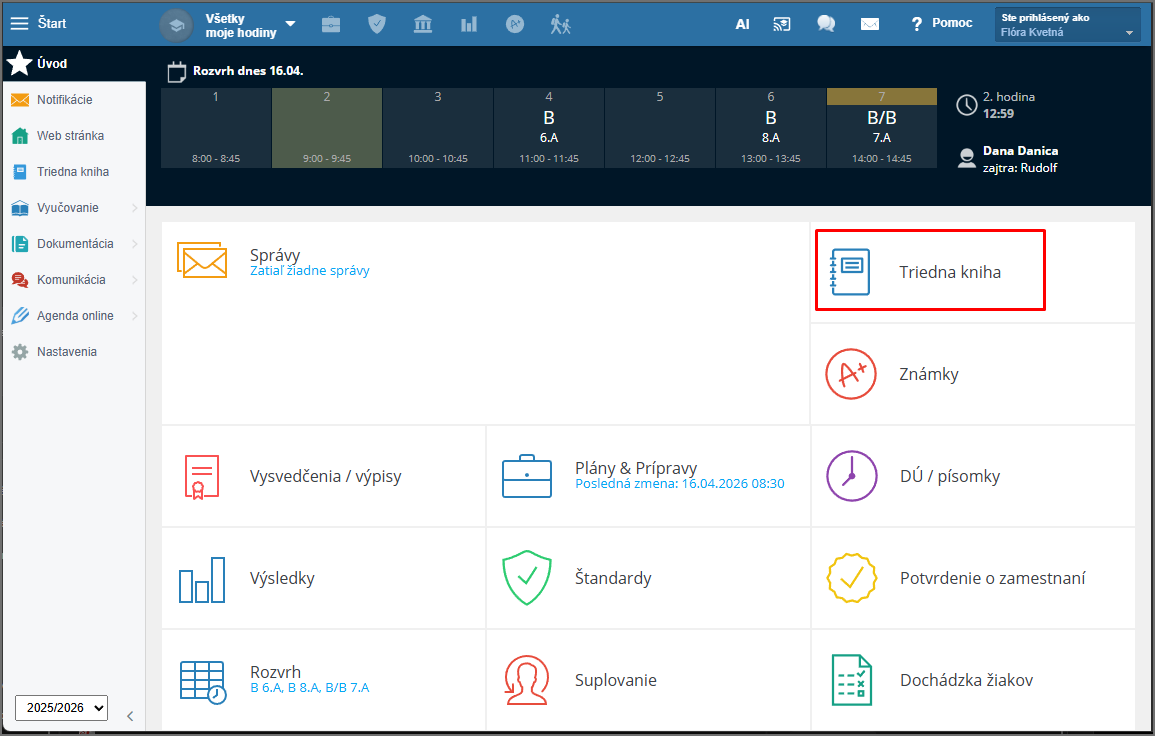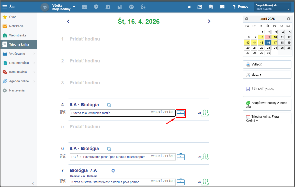 Najskôr prejdite do Triednej knihy a vyberte konkrétnu hodinu. Pri téme kliknite na ikonu Plánov a Príprav.
