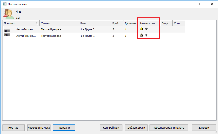 Или ръчно обозначете останалите налични класни стаи за тези часове: