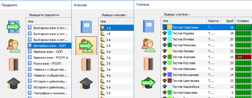 Това означава, че за тези три класа, има само двама свободни да преподават учители по това време. Тази ситуация софтуерът оценява ясно като грешка във въведените данни.