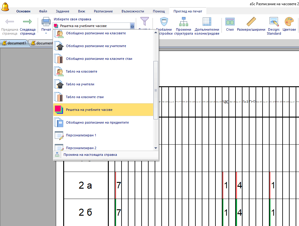 След това изберете „Принтирай таблицата с часовете“ от списъка с налични разпечатки: