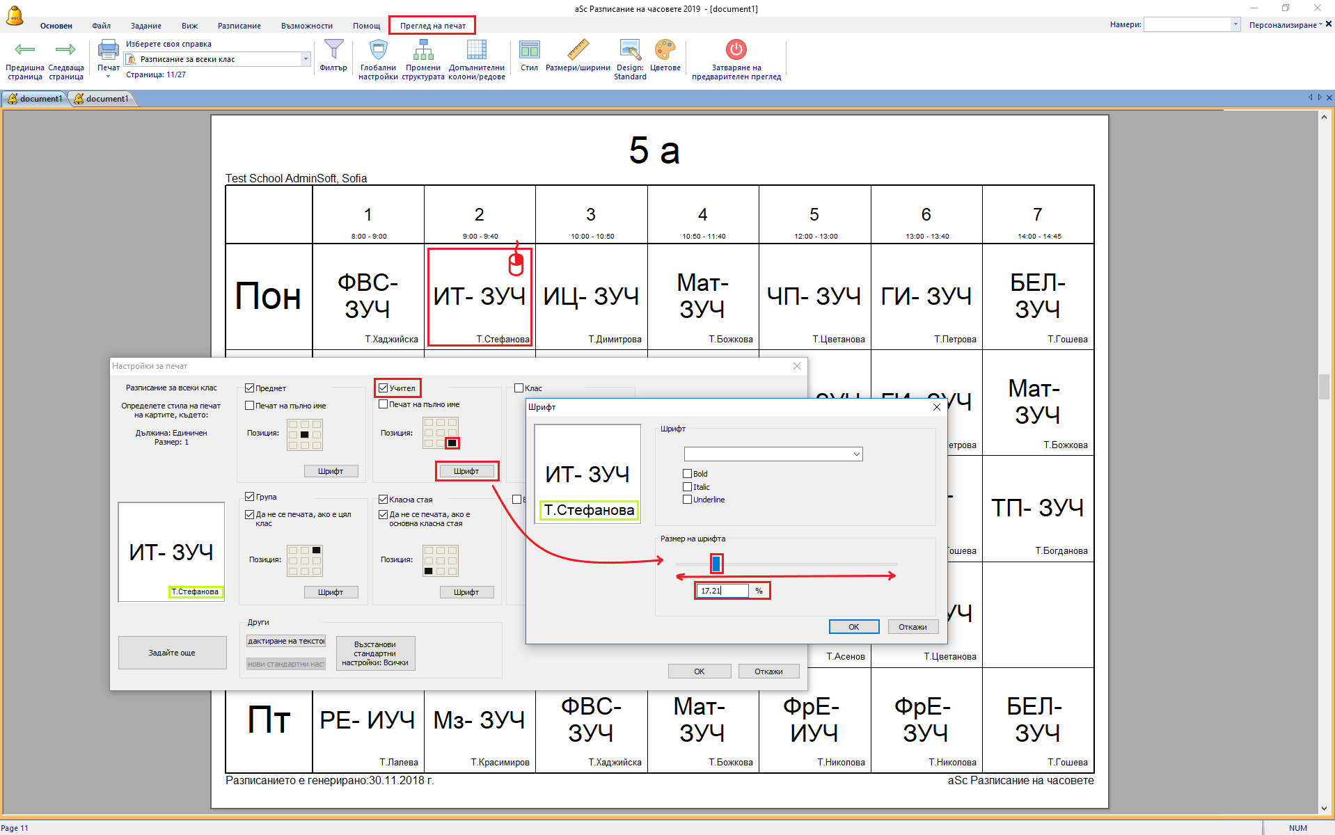 Искам да разпечатам само имената на учителите в разпечатката на разписанието/трябва ми по-голям шрифт