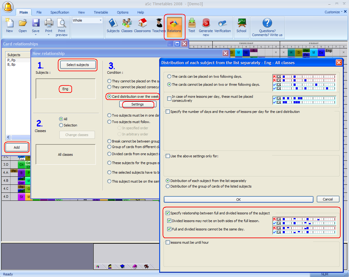 - Lecciones divididas no pueden impartirse el mismo día que las enteras – esto es importante sólo en algunas escuelas.