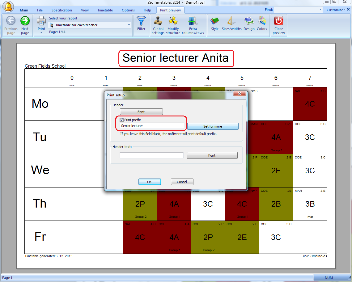 Cómo puedo imprimir Profesor universitario o Catedrático en vez de Profesor?