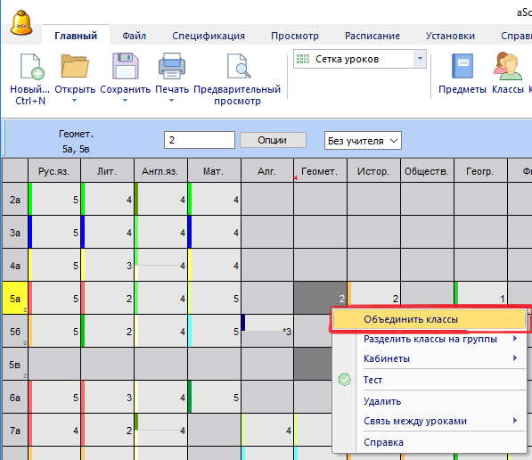 Вы можете быстро создать объединенные уроки в сетке уроков.